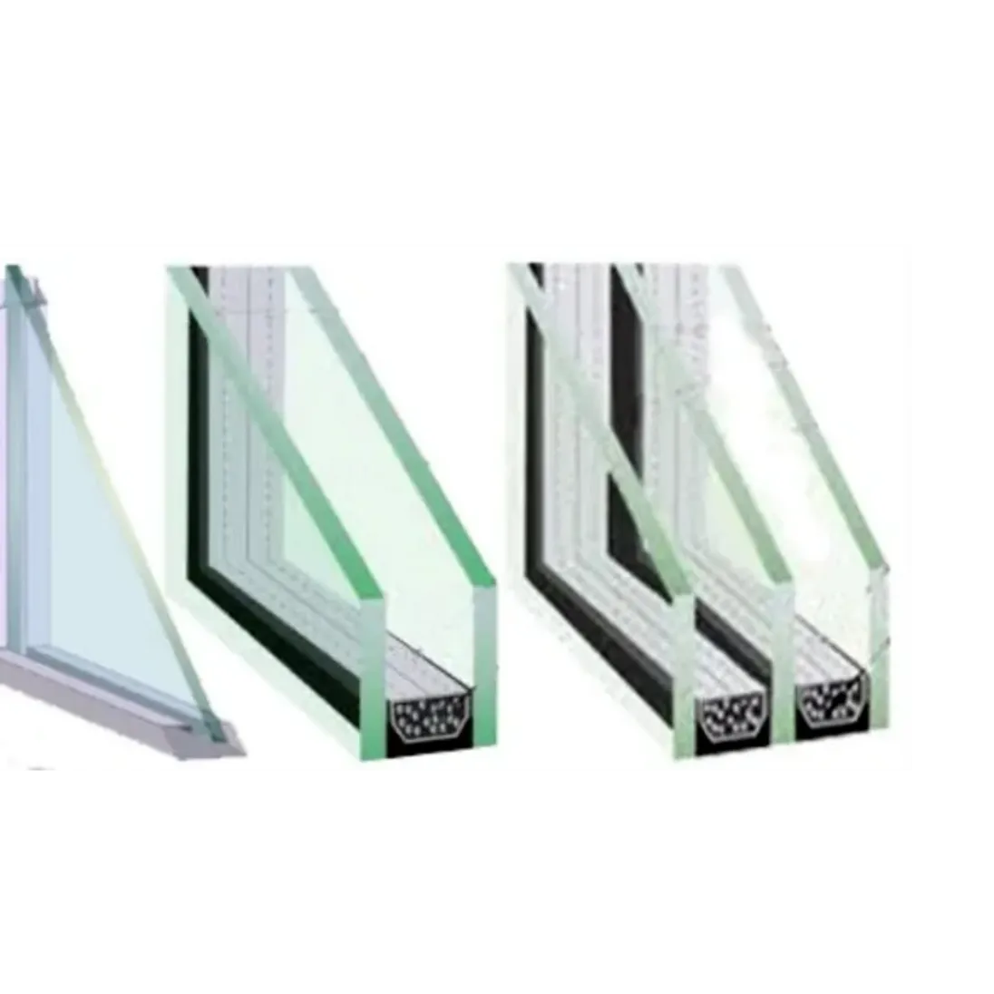 Glass is mounted into the SASH that is specifically made for the style of window. Basic Double Pane is two panes of glass with a sealed spacing of air or gas in between. Triple pane is three panes similar to two.